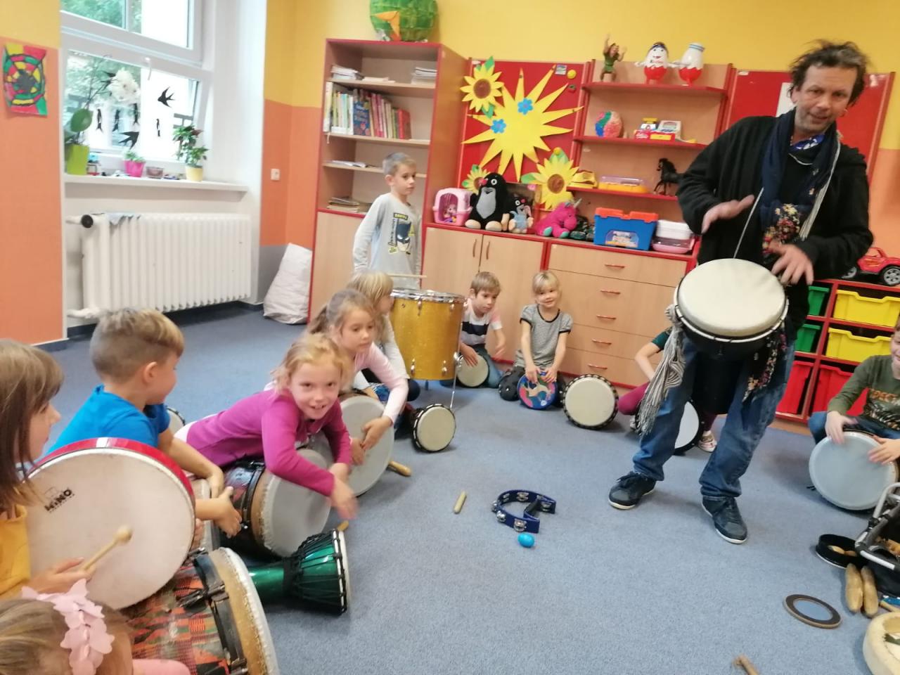 Dne 6.10. měly děti ze školní družiny na programu bubnující odpoledne s panem Šušorem.