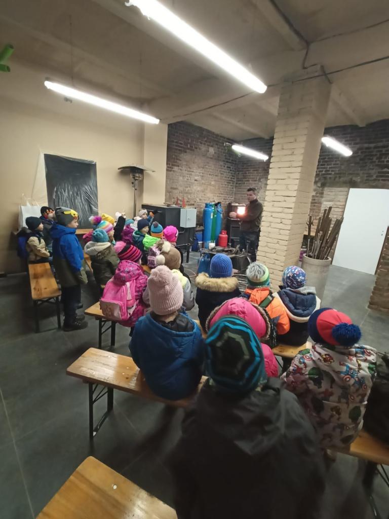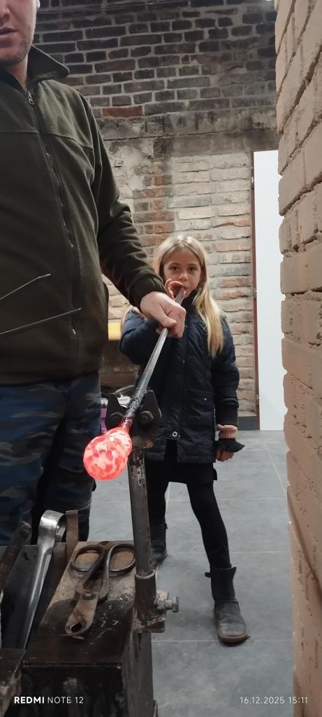 Děti měly možnost vyzkoušet si, jak se vyfukují skleněné vánoční ozdoby na stromeček.
