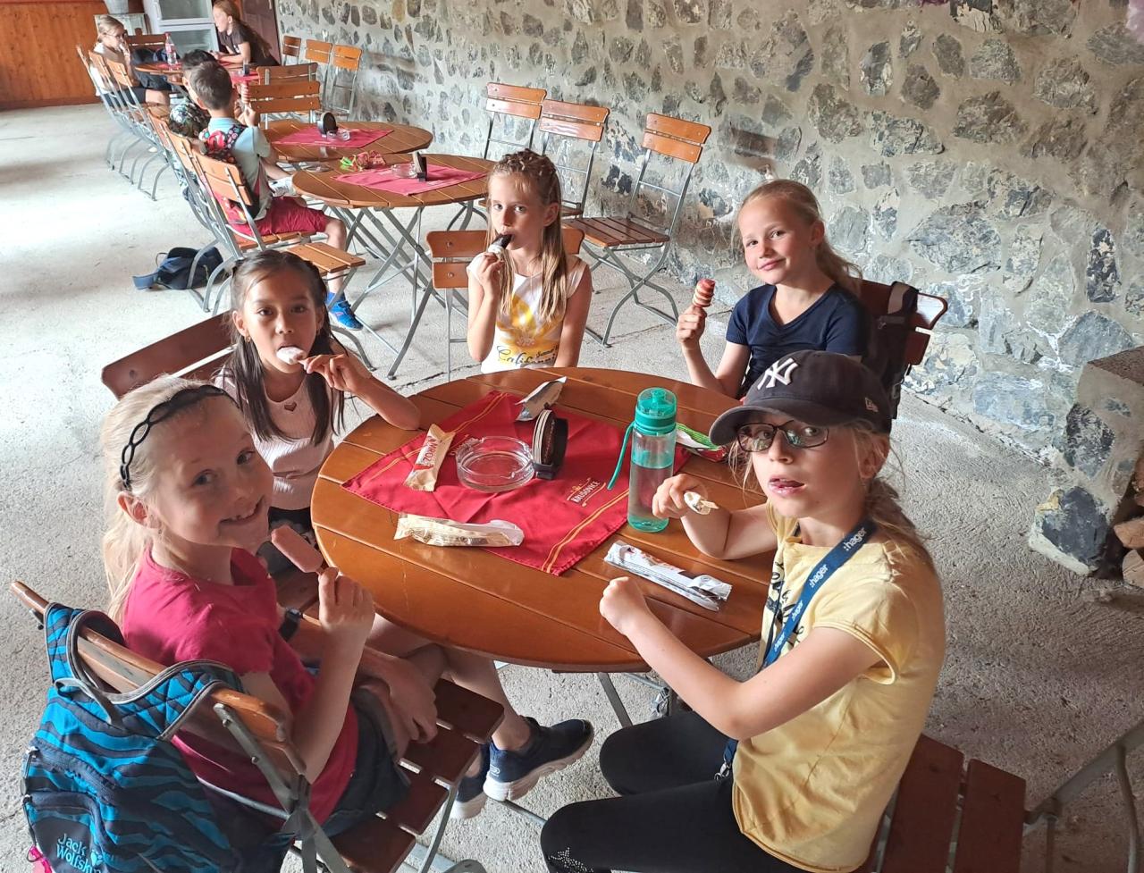 Děti ze školní družiny vyrazily na výlet přes řeku přívozem na prasátka a zmrzlinu za odměnu.