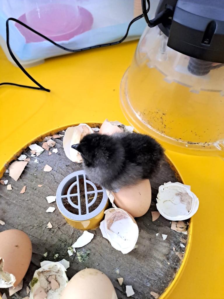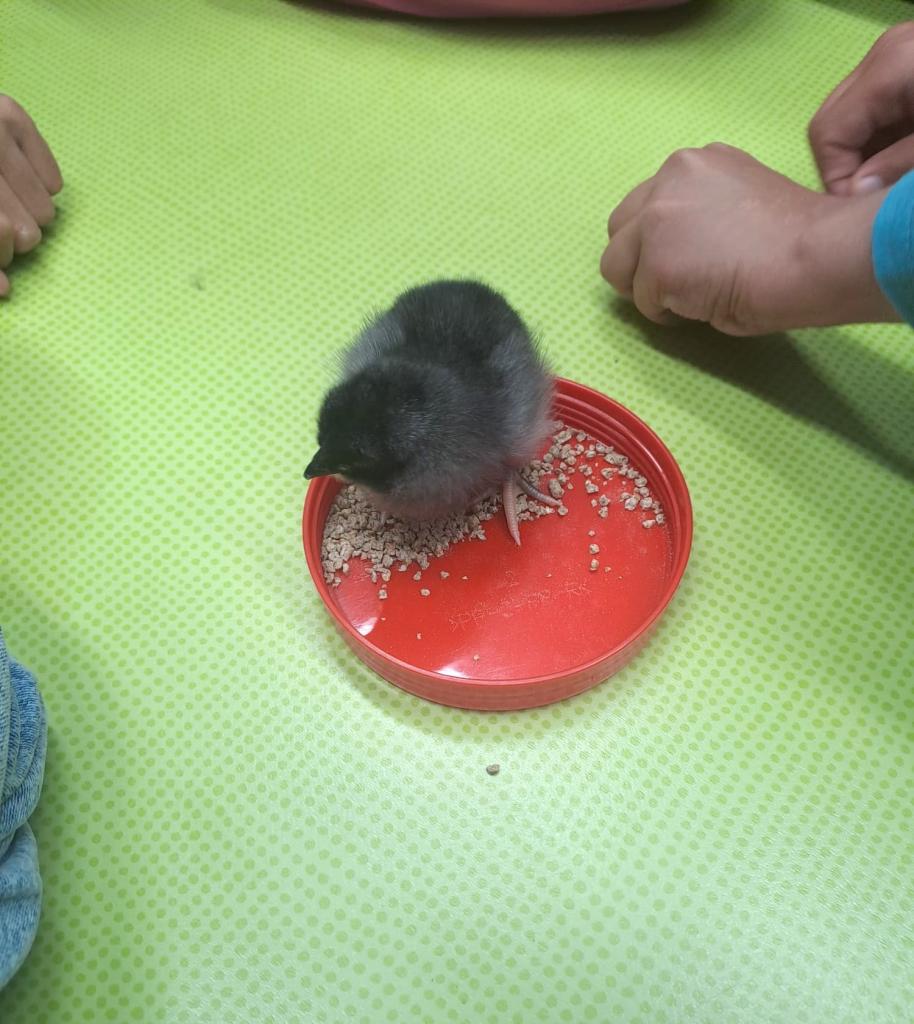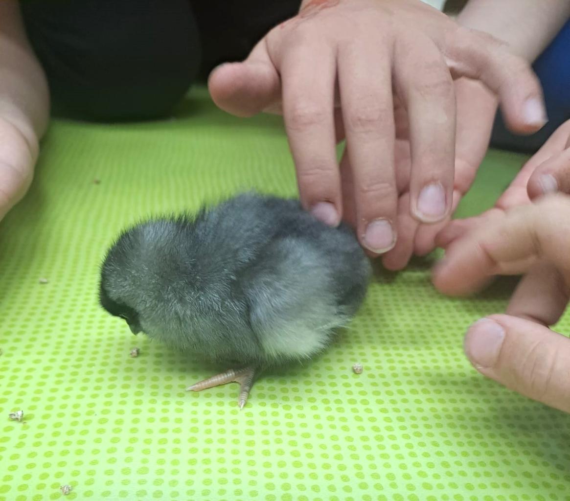 Děti ze školní družiny měly možnost sledovat na vlastní oči líhnutí kuřátek a následně o ně pečovat.