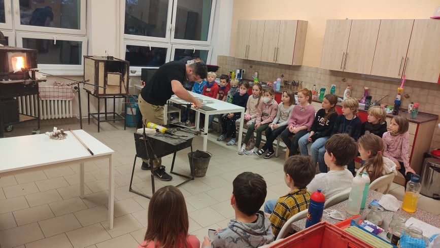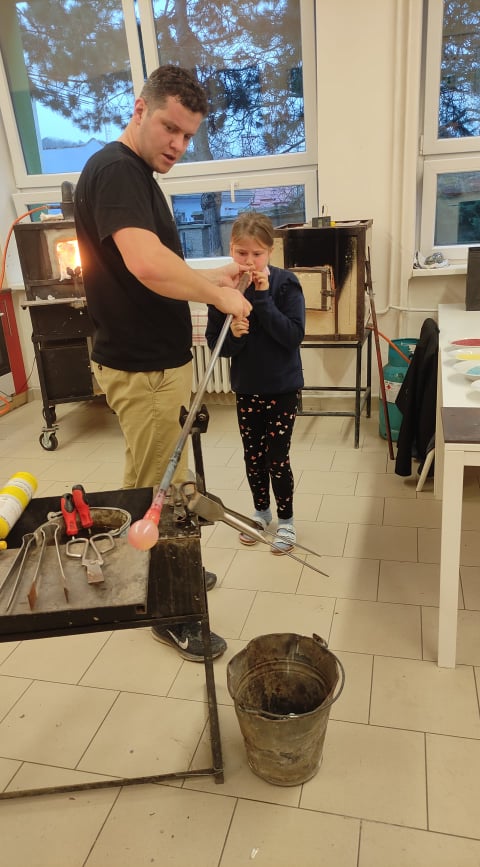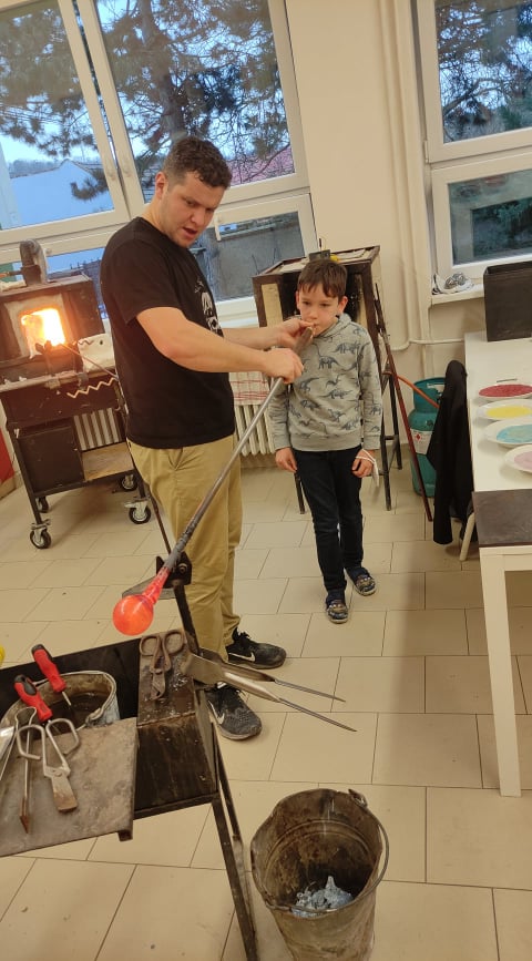 Ve dnech 15.-16. 12. 2021 proběhl ve škole pro žáky 2.B, 3.B a 5.B projektový den se sklářem (studio Stehlík), kdy si děti vyfoukly svou originální skleněnou ozdobu.