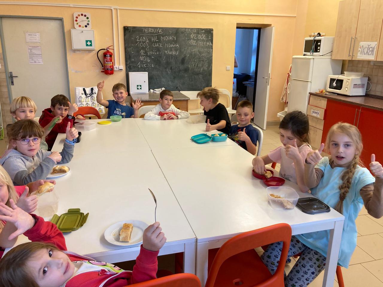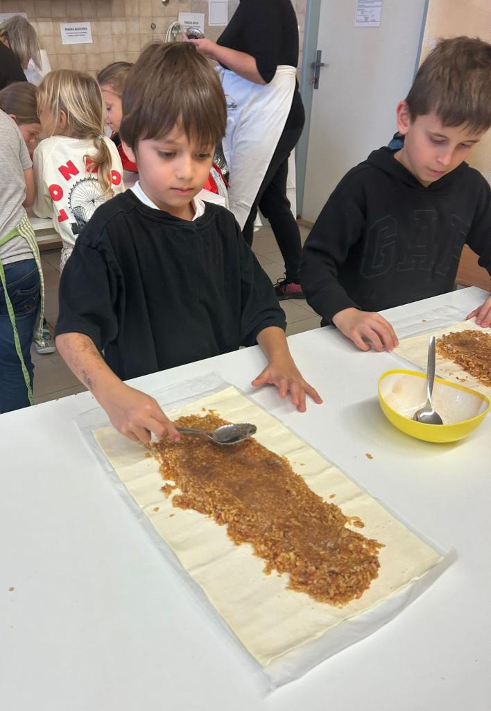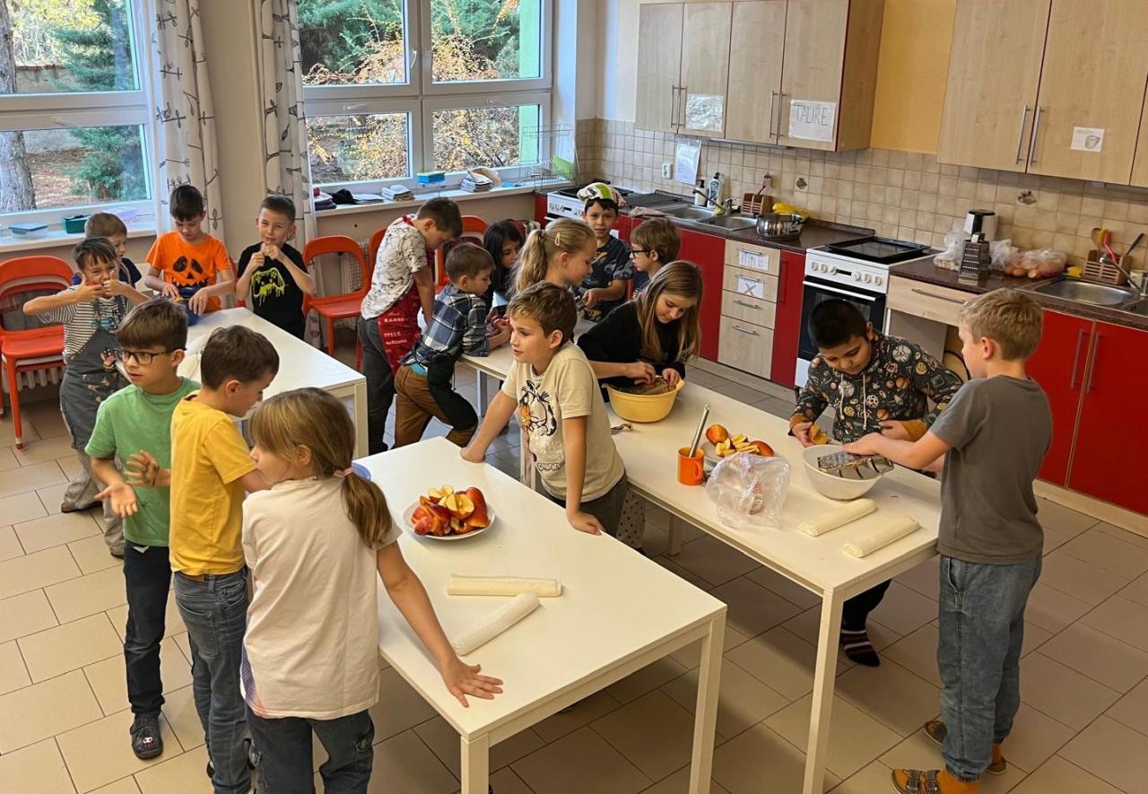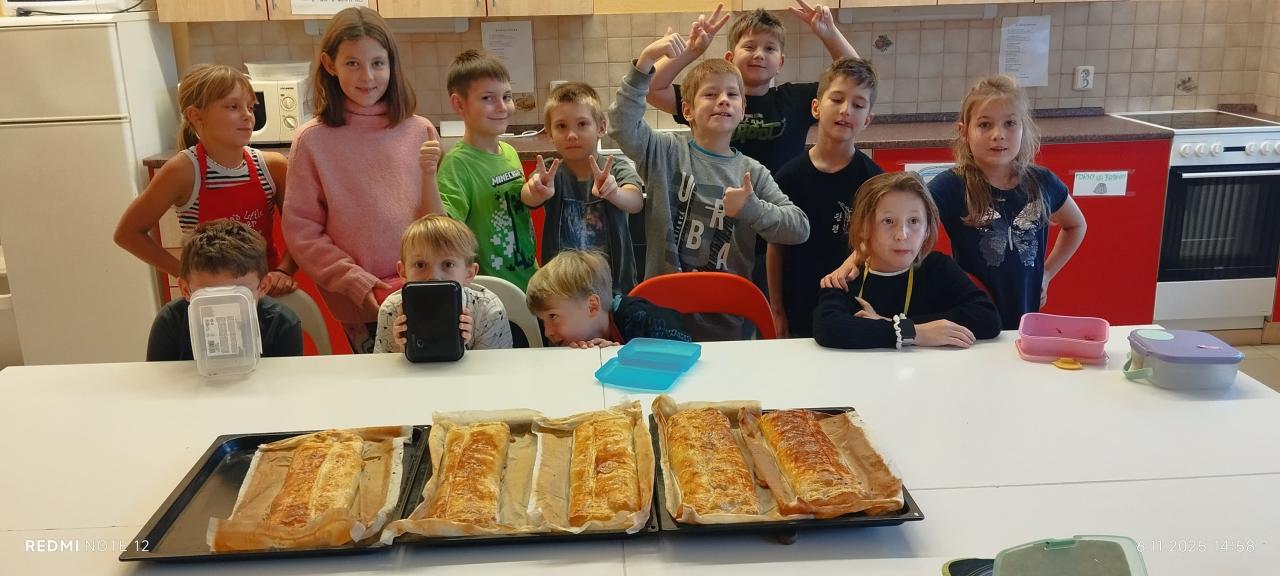 Děti ve školní družině si upekly jablečné štrůdly, které si pak společně snědly ke svačince.