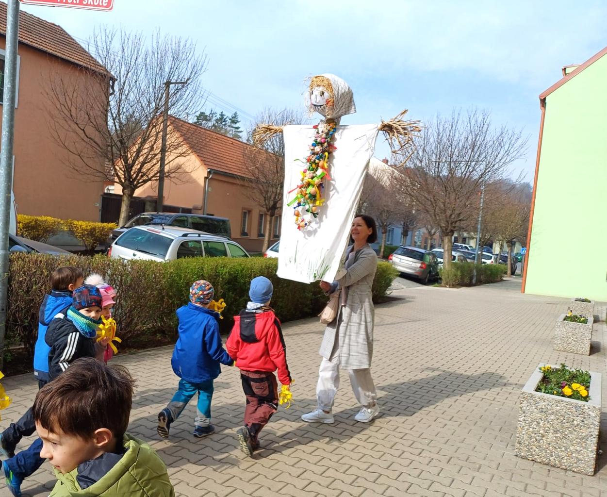Průvod MŠ s Moranou za doprovodu 1.B